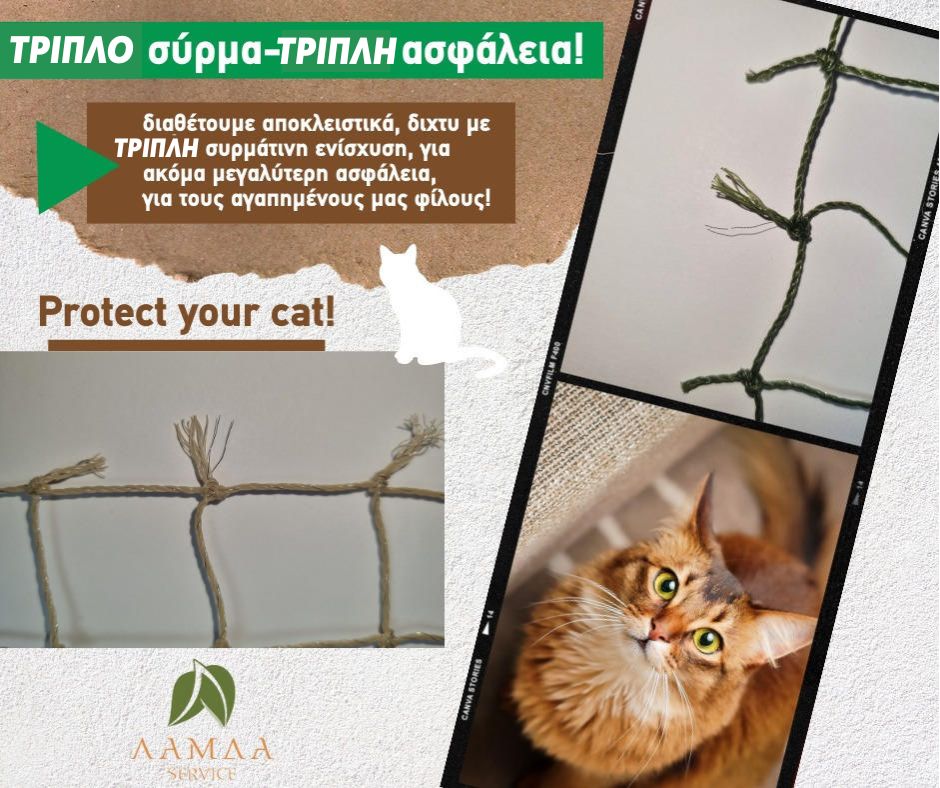 Η εταιρεία μας αναλαμβάνει την τοποθέτηση του μοναδικού ΤΡΙΠΛΟΥ εξειδικευμένου διχτυού για την προστασία των γατών.
